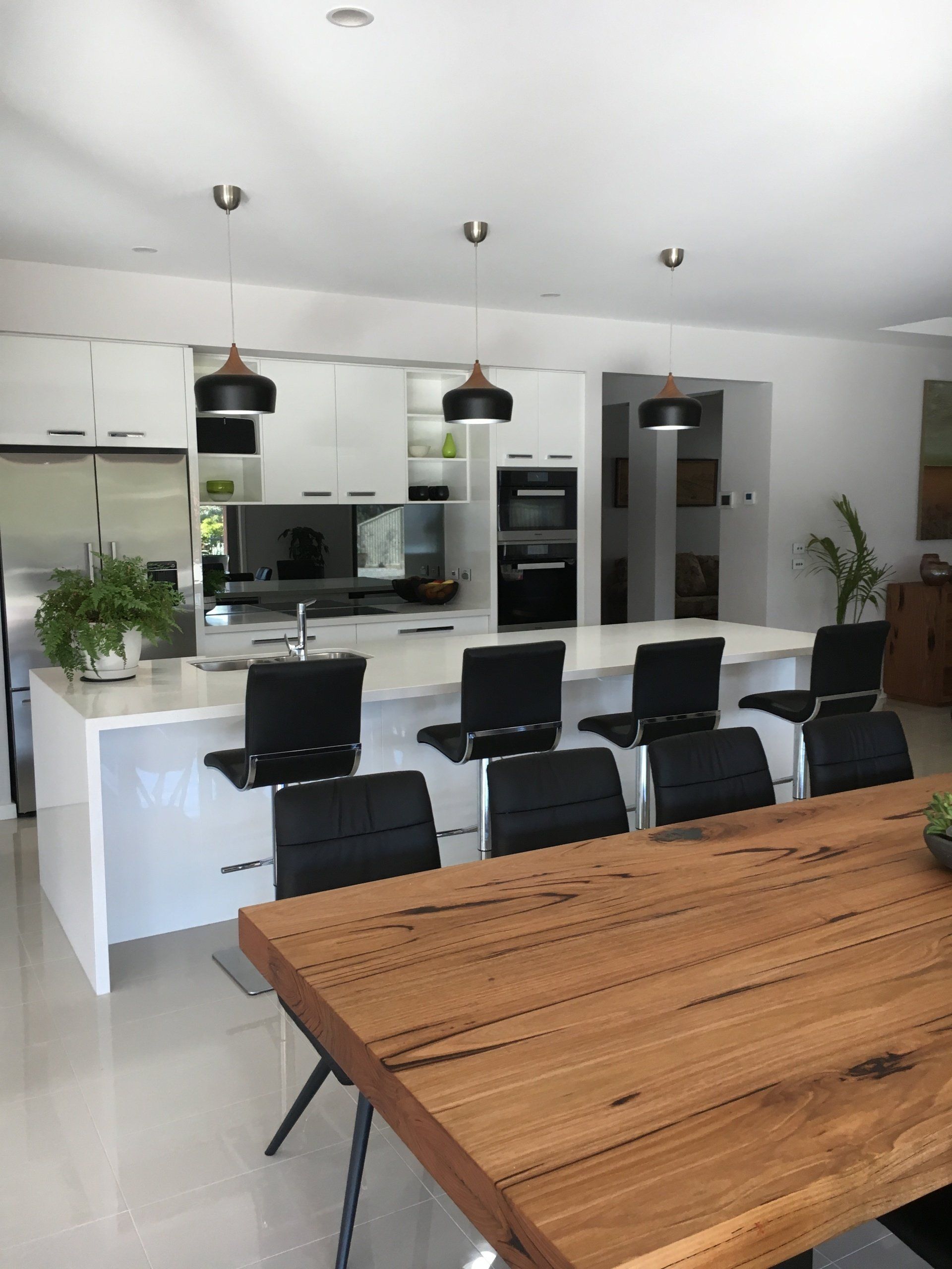 Of the moment. Now. Modern meets a relaxed, family environment. A contemporary kitchen is functional and welcoming.